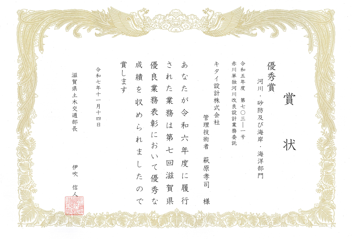 第七回滋賀県優良業務表彰において4業務で優秀賞を受賞しました!