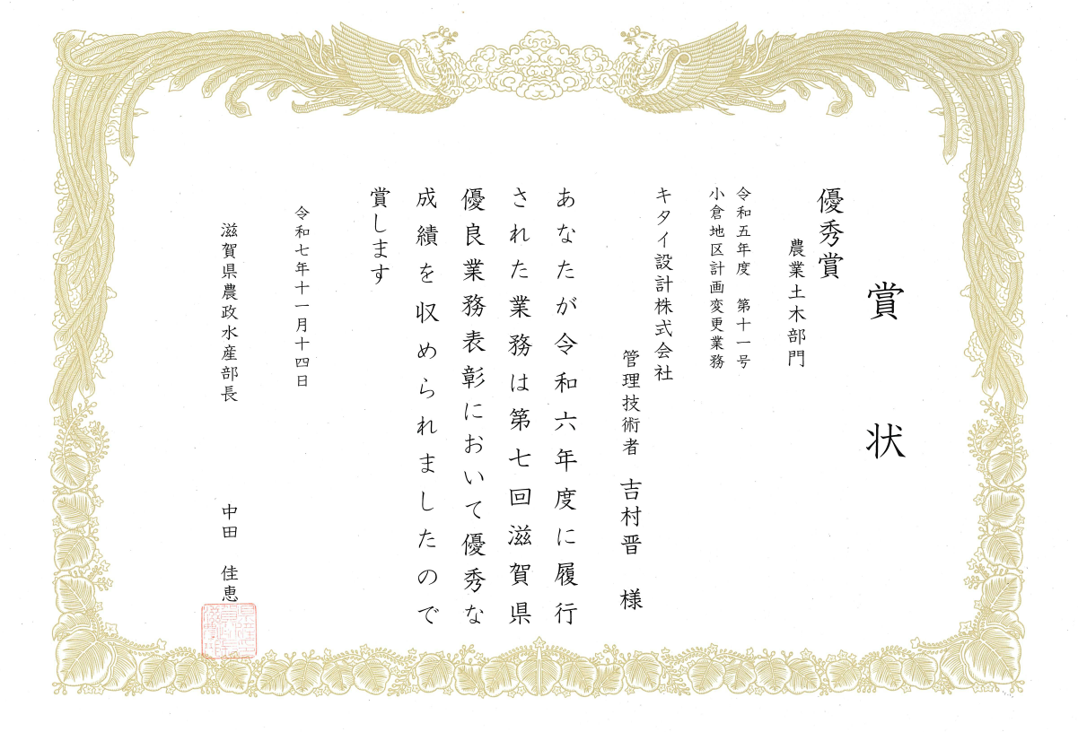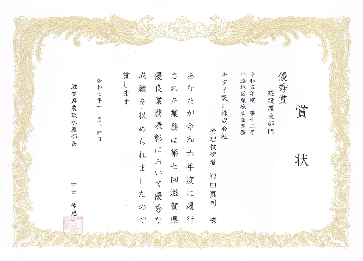 11月14日(金)滋賀県庁において、第七回滋賀県優良業務表彰式が執り行われ、優秀賞を当社が受賞しました。